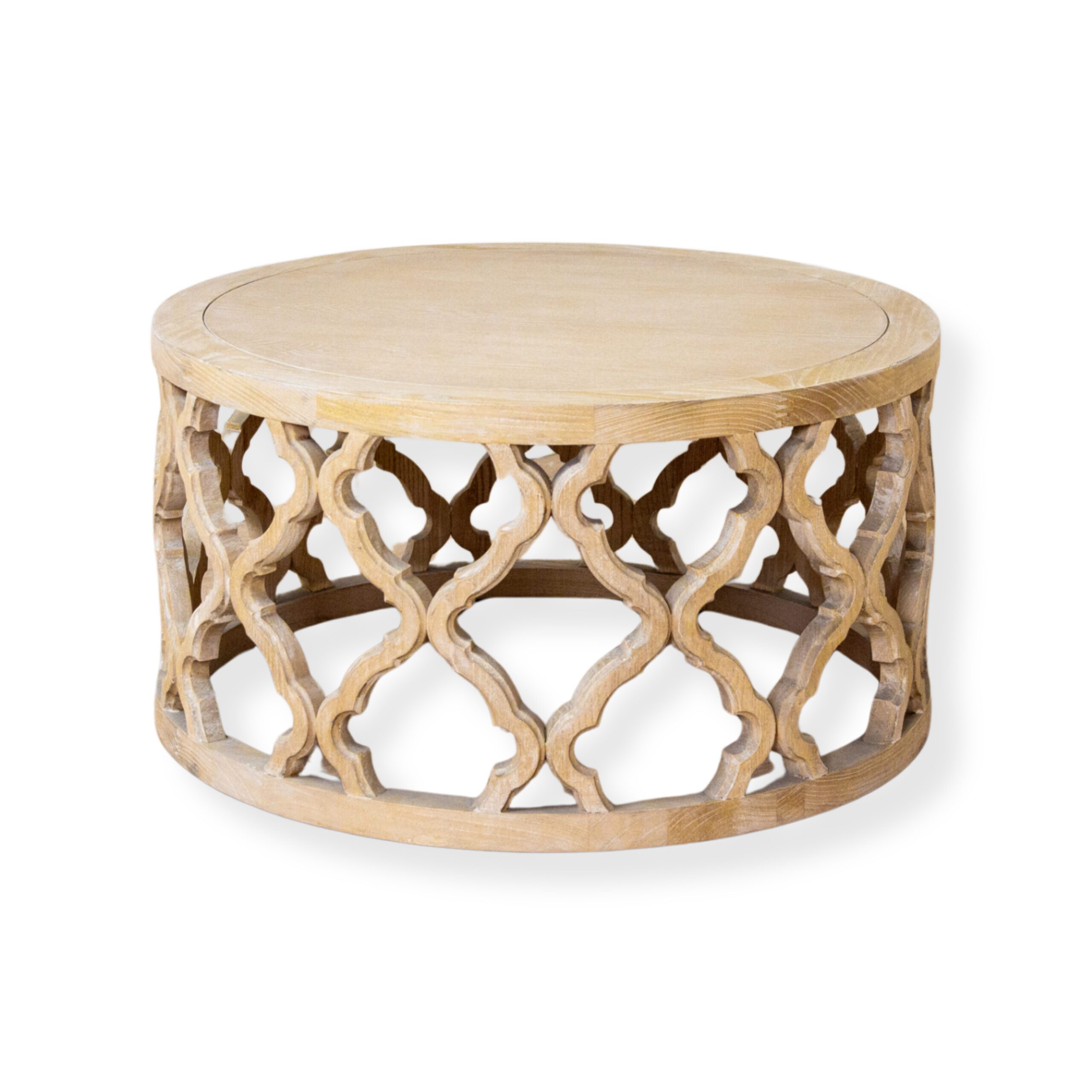 DETAILS | Natural Wood Accent Table with beautiful Lattice Accents- Perfectly paired with our Provence or Colette Collections COLOR | Natural Wood DIAMETER | 30″ HEIGHT| 16″