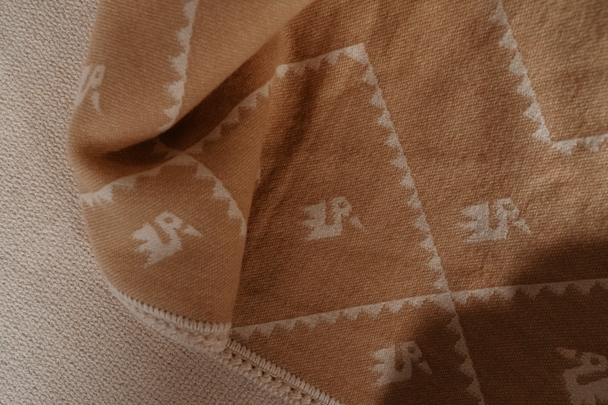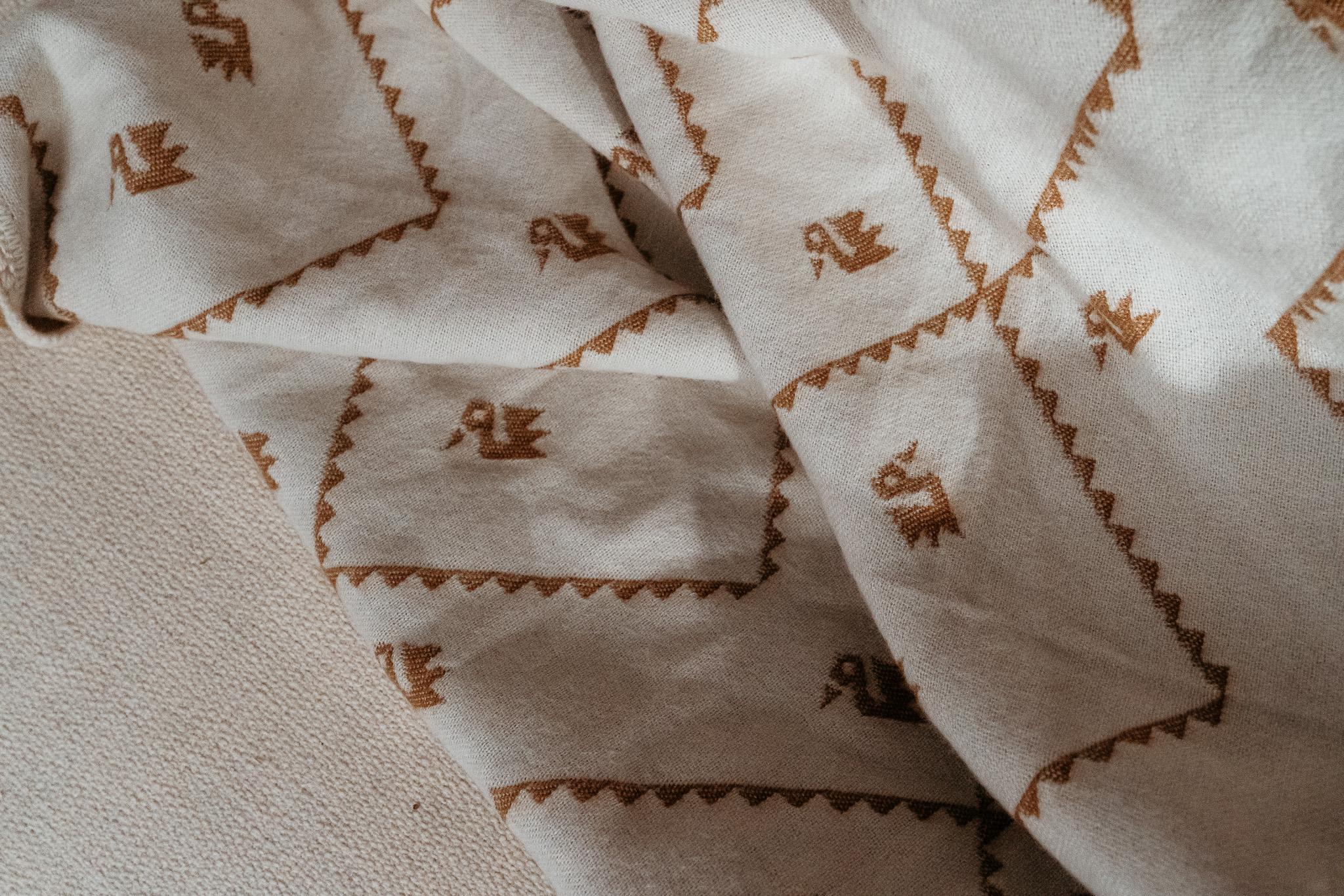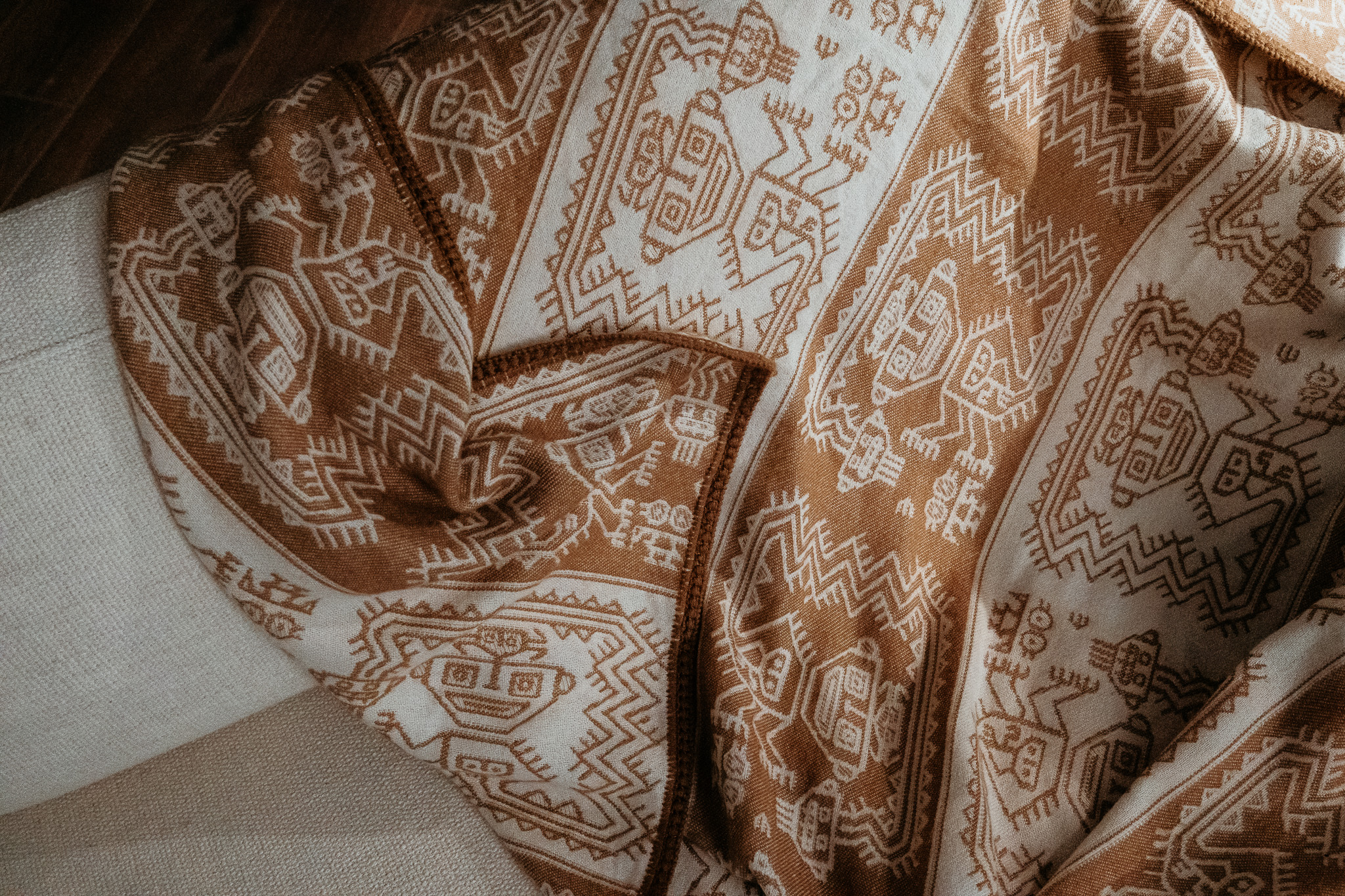 / White & Brown Peruvian Alpaca Wool Throw Blanket